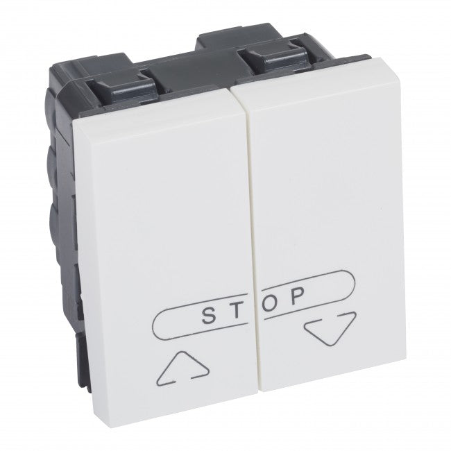 The Legrand Arteor Double Push Button for Electric Roller Blinds (2Mod) is an innovative and stylish solution for controlling electric roller blinds. Designed with a dual push button configuration, this 2-module switch allows easy and intuitive operation of your blinds, offering both up and down functionality. Part of the premium Legrand Arteor range, it integrates seamlessly with modern interiors, delivering a sleek and professional appearance. Crafted from high-quality materials, it ensures durability, reliability, and easy installation, making it an excellent choice for residential and commercial spaces.- White 572219 - 2 modules