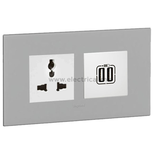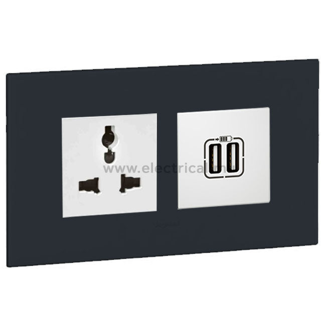 Legrand Arteor Multistandard Socket & Double USB Socket (with support frame and plate)