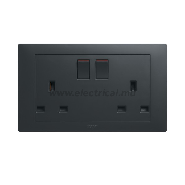 Hager Muse 13A Double Switched Socket Outlet - Knight black