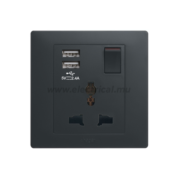 Hager Muse 16A Single Switched USB Universal - Knight black