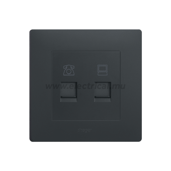 Hager Muse RJ11 Phone Socket + RJ45 Cat 6 Data (Knight black)