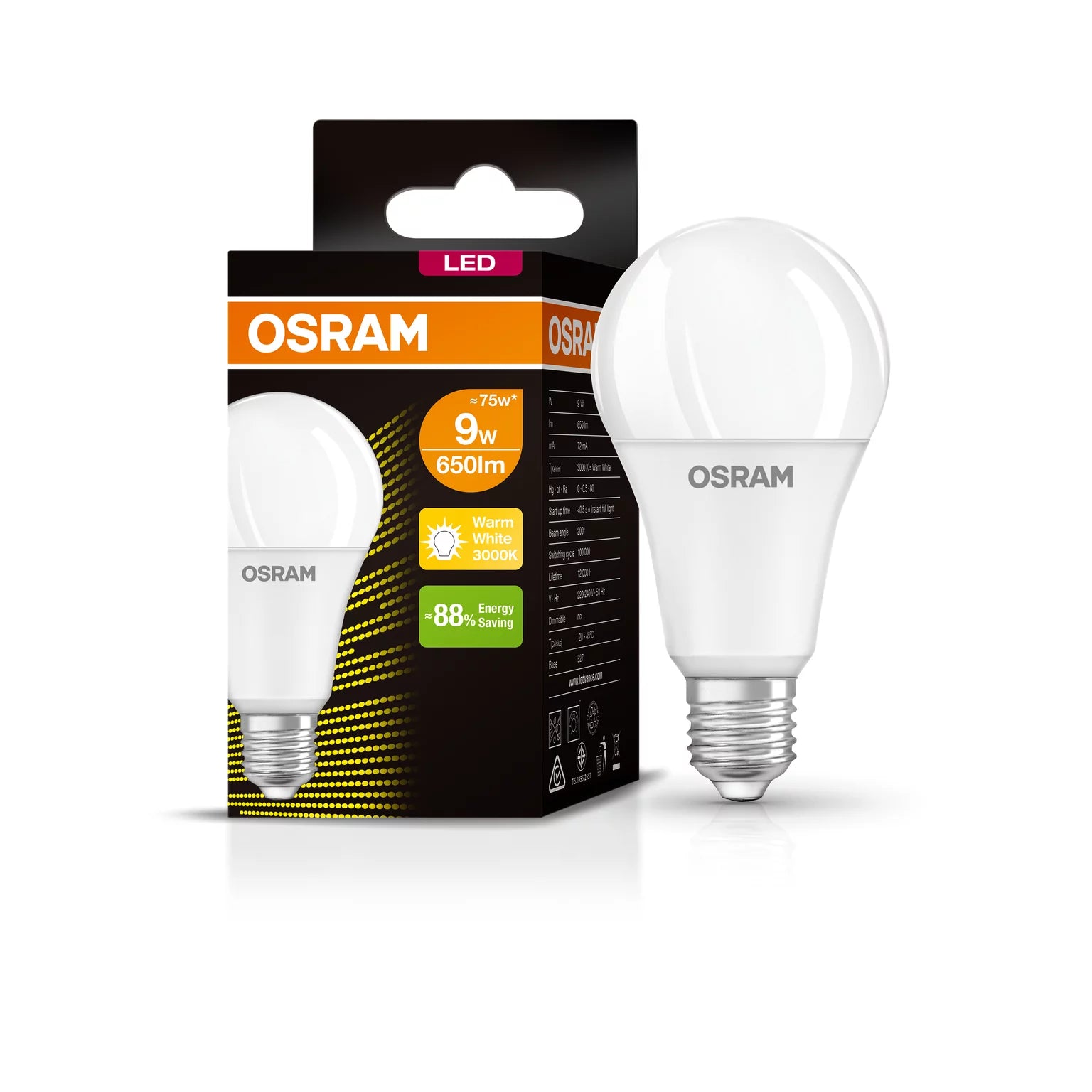 - Energy savings of up to 88 % (compared to traditional incandescent lamps)