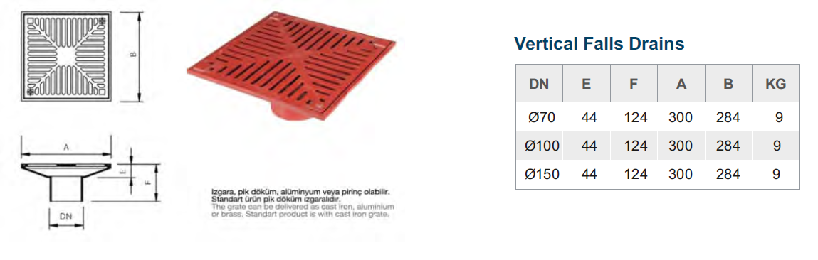 Sukar Cast Iron Vertical Descent Floor Drain - 100mm. 20cm x 20cm